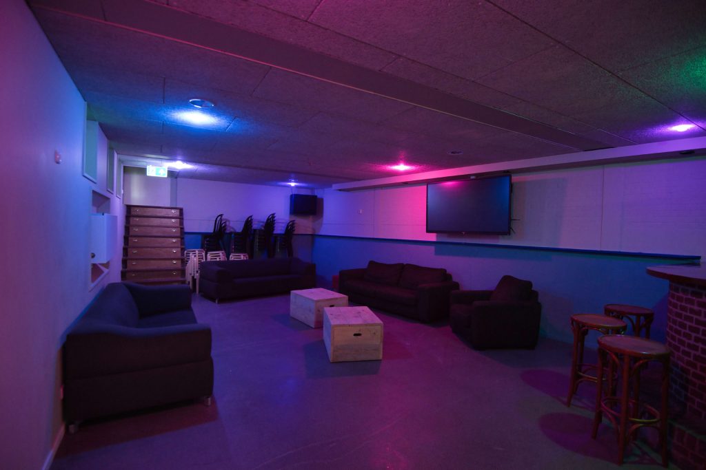 De Kelder is de ruimte voor de jeugd. Het is een sfeervolle ruimte waar je met de verlichting verschillende effecten kan bewerkstelligen. Er hangt een groot beeldscherm waarop presentaties kunnen worden getoond. Tevens kunnen hier bijvoorbeeld films gestreamd worden.